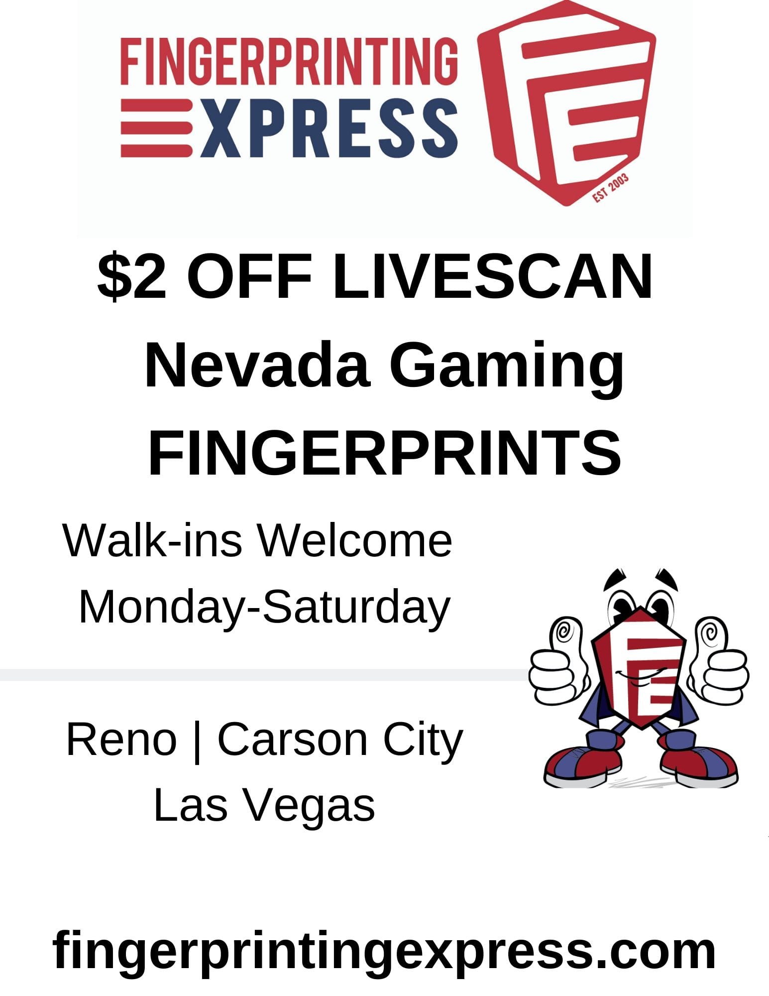 - Take your fingerprint form (mandatory) to one of the Nevada Gaming Control Board fingerprint locations. We have four convenient locations in Las Vegas, Carson City, and Reno to serve you that are all approved fingerprint locations for the NGCB.